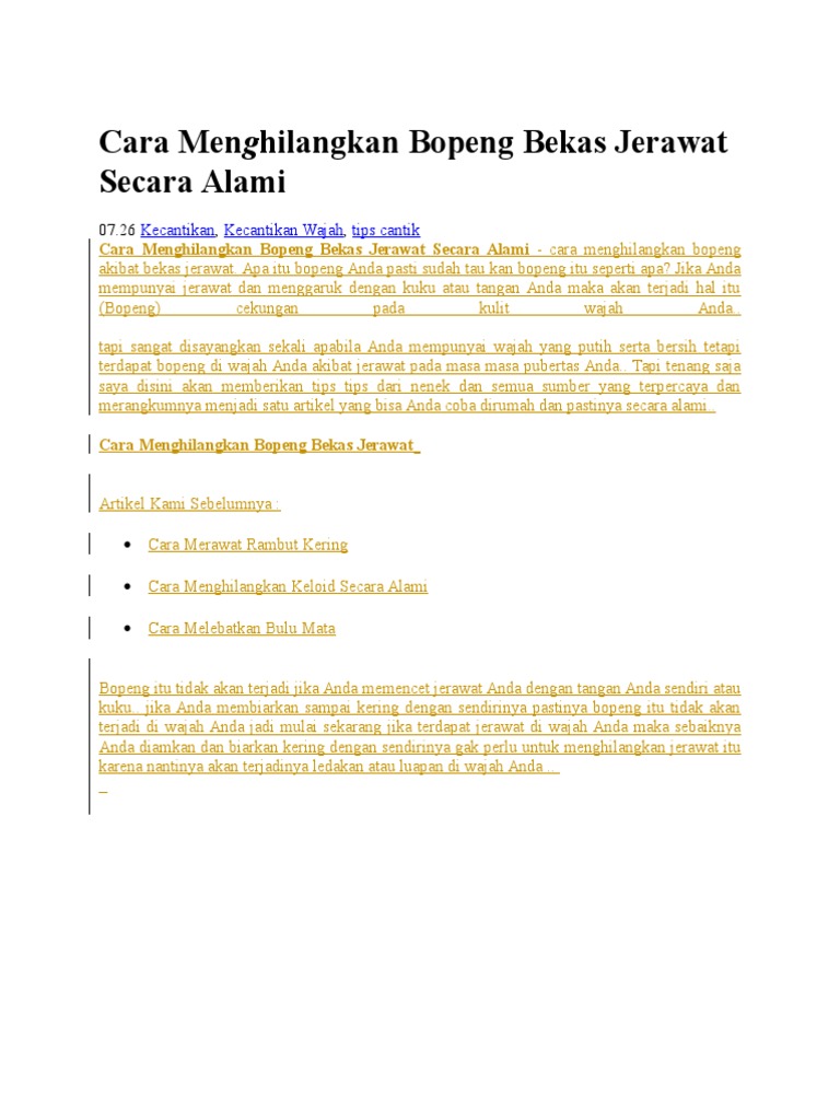 Pdf Cara Menghilangkan Bopeng Bekas Jerawat Secara Alami
