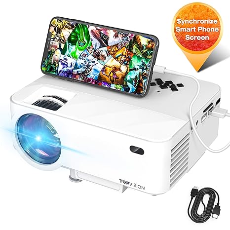 Mini Projector Topvision Video Projector With Synchronize Smart Phone Screen 1080p Supported 176 Display 50 000 Hours Led Compatible With Fire