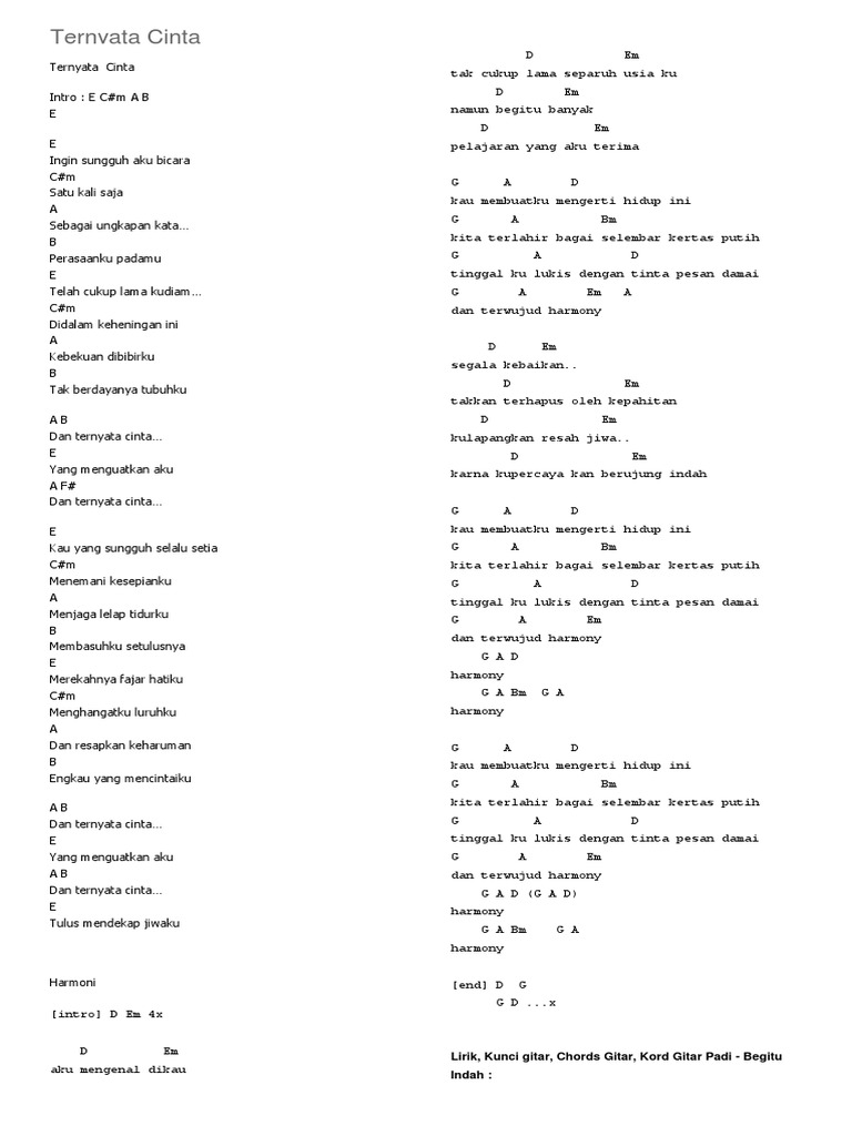 Chord Padi Harmoni Chord Dan Lirik Lagu