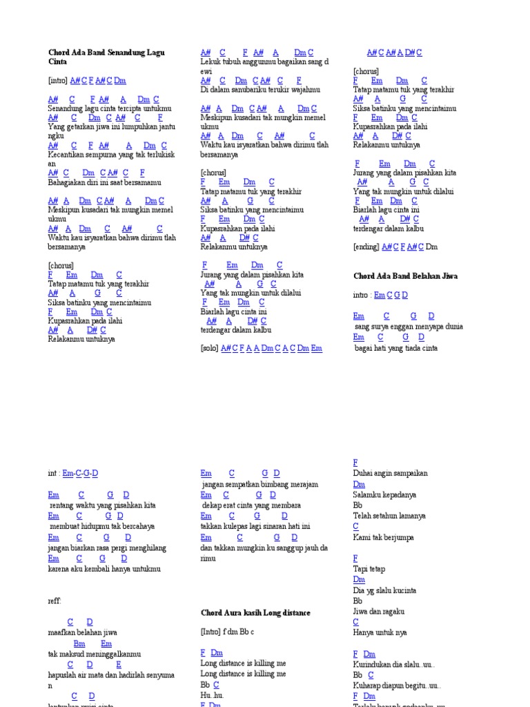 Chord Ari Lasso Padi Andra And The Backbone Tahta Anji