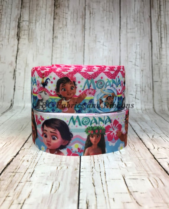 1 5 Moana Ribbon Grosgrain Princess Movie Tv Cartoon Characters Island Girl Pink White Dot Grosgrain Hair Bow Sold By 5 Yards