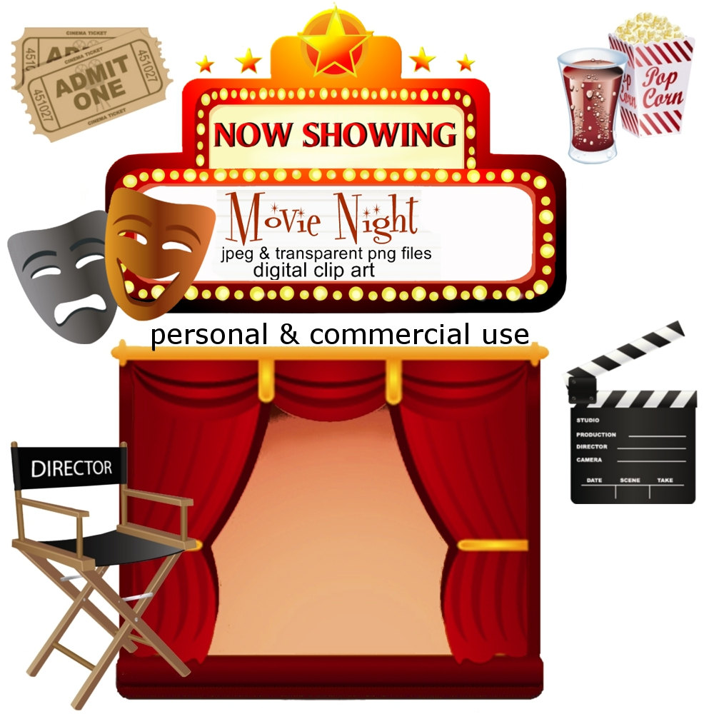 Movie Clipart Cinema Clip Art Movie Party Decoration Cinema Scrapbook Elements Digital Clipart Png Clip Art Instant Download
