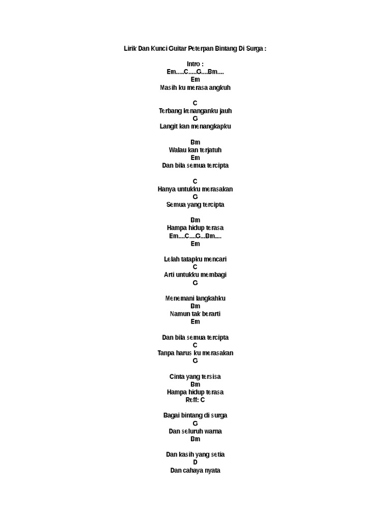 Pdf Chord Gitar Peterpan Bintang Di Surga Paling Mudah