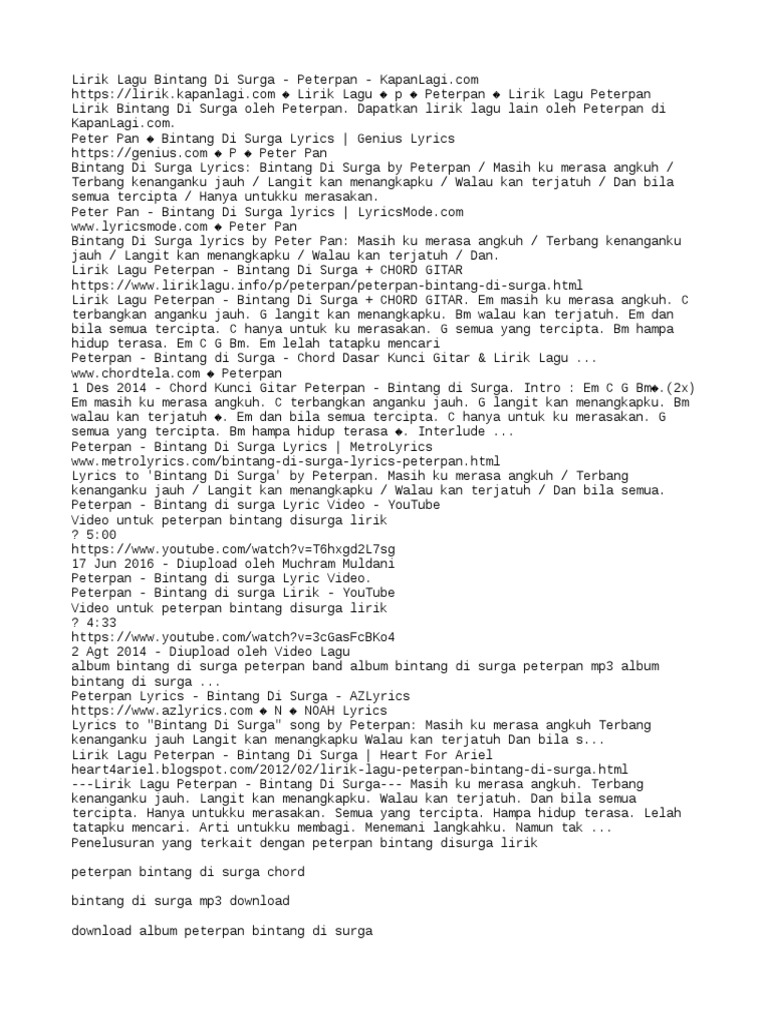 Telecharger Lirik Peterpan Bintang Di Surga Rar Lumdizo