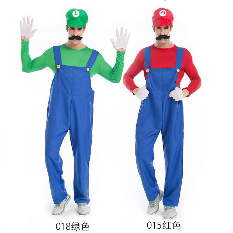 Halloween Costumes Men Super Mario Luigi Brothers Plumber Costume Jumpsuit Fancy Cosplay Clothing For Adult Men Party Costume Themes Halloween