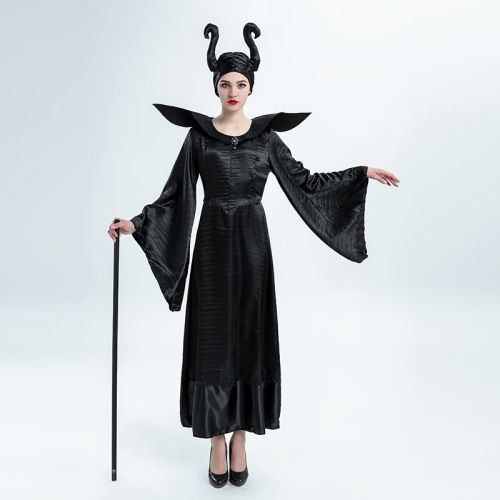 Women Halloween Cosplay Clothes Movie Character Black Witch Long Length Dress Party Costume Clothing Halloween Costume For Four People Halloween