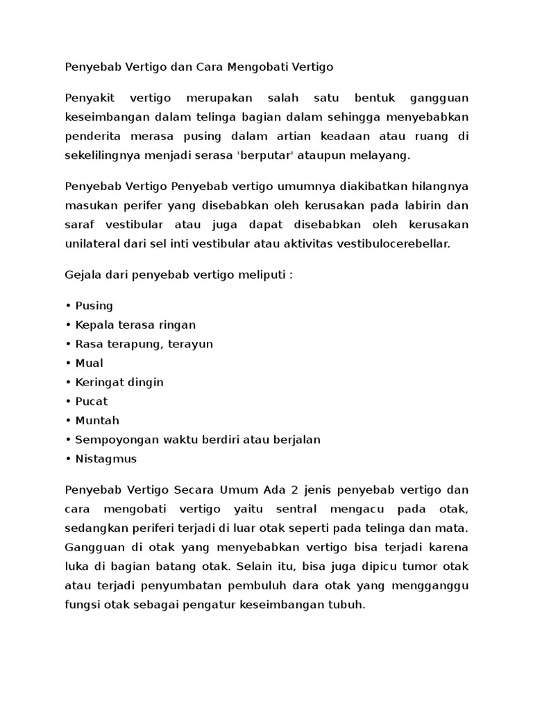 Penyebab Vertigo Dan Cara Mengobati Vertigo Silanghati Com